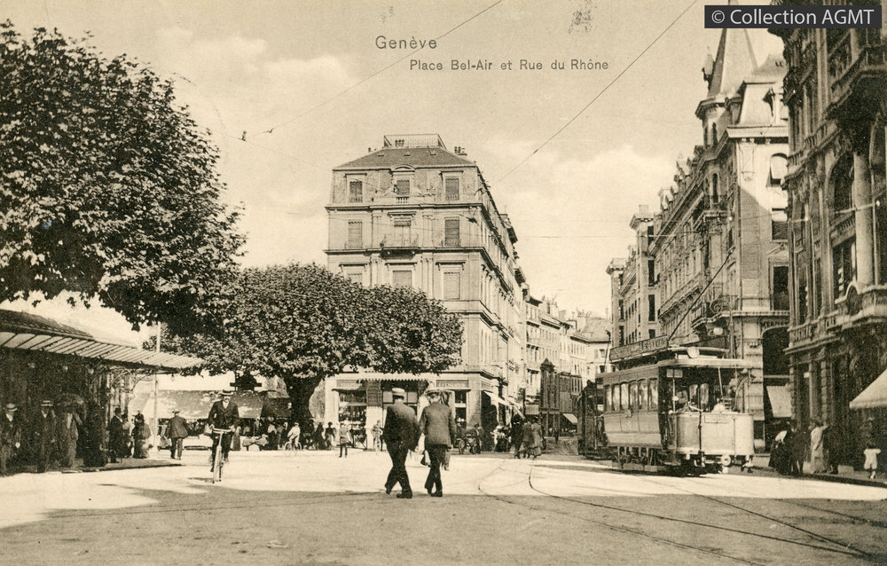 [Année] 1910Index. décimale : 3141 Tramway et métro léger urbain - véhicule - service régulier, transport de voyageur Genève : place Bel-Air et rue du Rhône [document graphique à deux dimensions] . - Karlsruhe ; Genève : Ed. Moos, [ca 1910] . - 1 carte postale : noir et blanc ; 9 x 14 cm. - (Moos; 2150) .
