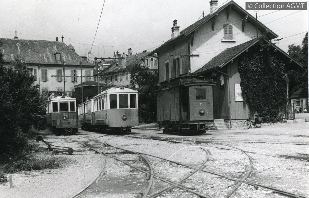 PermalinkVue d'ensemble de la gare d'Aubonne, avec le fourgon automoteur 71, une automotrice série 2-3 et les deux automotrices à bogie de l'AAG / Christian Schnabel