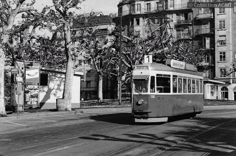 En service sur la ligne 1, sens B, l'automotrice 733 de la CGTE descend la rue Ferdinand-Hodler [document graphique à deux dimensions] / Eric Rahm, Photographe . - Genève : Association genevoise du musée des tramways, [ca 1974] . - 1 photographie : noir et blanc ; 9 x 13 cm. Langues : Français (fre)