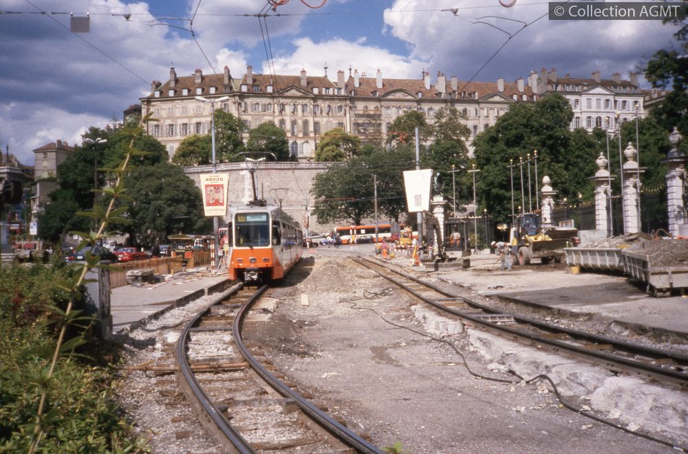 Les voies de la place de Neuve ont été dégarnies en vue de leur remplacement : celle en direction de Plainpalais est encore posée sur des traverses en bois et du ballast [document projeté ou vidéo] / François Chapuis, Photographe . - [S.l.] : [s.n.], 2000 . - 1 diapositive : couleur ; 5 x 5 cm. Langues : Français ( fre) |  |