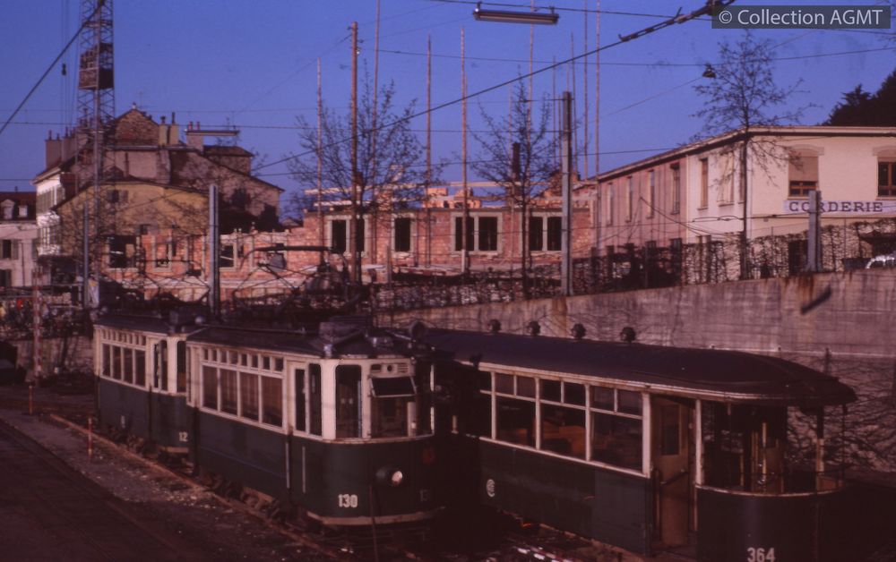 Les automotrices 127 et 130 de la CGTE ainsi que la remorque 364, en attente de démolition, sont garées sur des voies provisoires dans la boucle du Rondeau de Carouge [document projeté ou vidéo] / François Chapuis, Photographe . - [S.l.] : Kodak, 1964 . - 1 diapositive : couleur ; 5 x 5 cm. Langues : Français ( fre) |  |