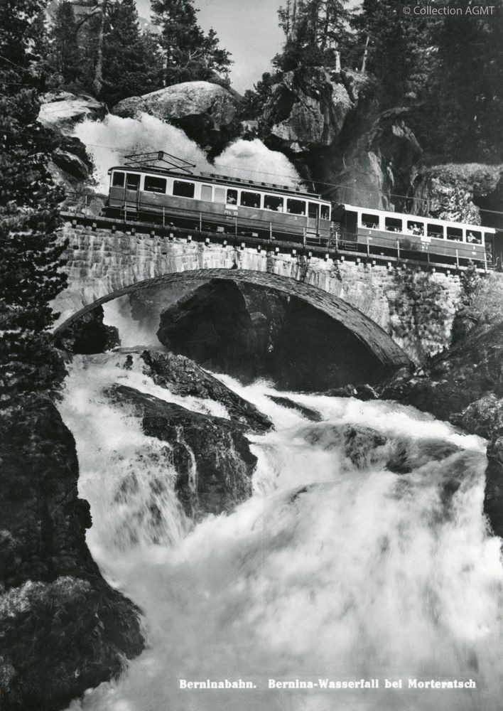 Berninabahn : Bernina-Wasserfall bei Morteratsch [document graphique à deux dimensions] . - Zuerich : Photoglob-Wehrli, [ca 1950] . - 1 carte postale : noir et blanc ; 15 x 11 cm. - (Photoglob-Wehrli; i 4243) . Langues : Allemand (ger)