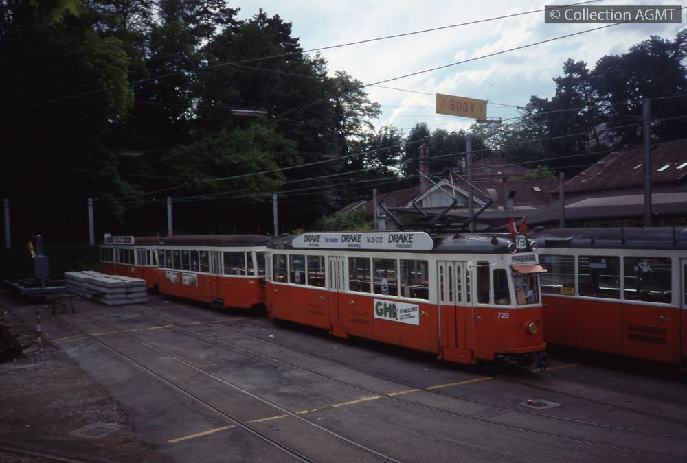 3141(494.42)_TPG_1987-41.jpgImage Jpeg PermalinkPermalinkLe convoi AGMT formé de l'automotrice 729 et de la remorque 363 stationne sur une voie de garage de la boucle du rondeau de Carouge / François Chapuis