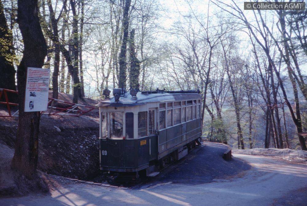 Offerte par la CGTE à la commune de Vernier, l'automotrice 69 a été installée sur un coupon de voie dans la forêt en-dessous de la cité du Lignon |