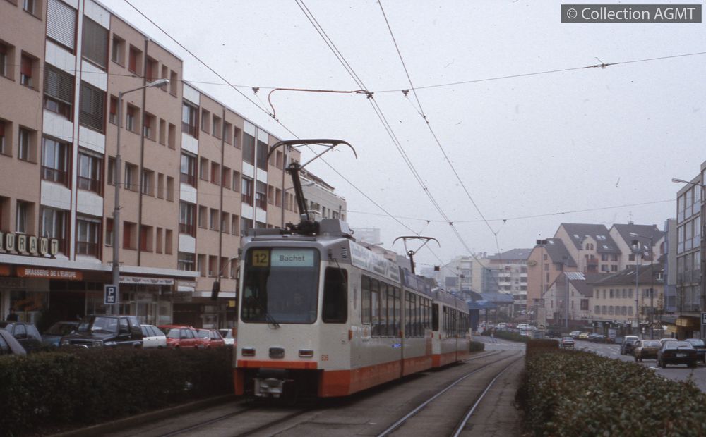 Un convoi TPG de la ligne 12 à destination du Bachet, formé des automotrices 836 et 823, quitte Moillesulaz [document projeté ou vidéo] / Richard J.S. Wiseman, Photographe . - [S.l.] : Agfa, 1995 . - 1 diapositive : couleur ; 5 x 5 cm. Langues : Français (fre)