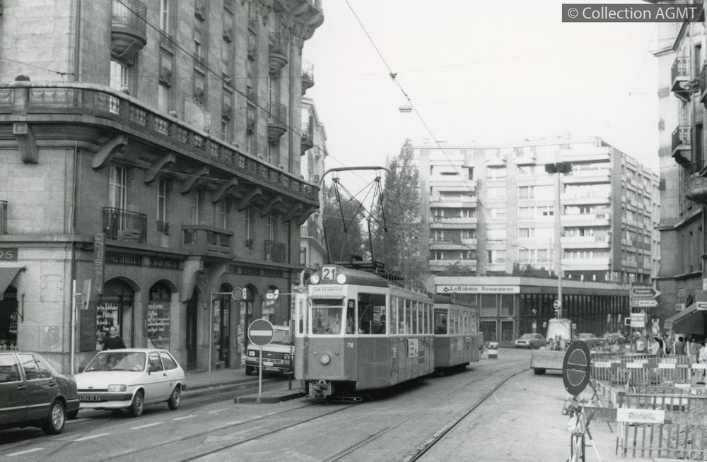3141(494.42)_TPG_2006-06.jpgImage JpegEn service sur la ligne 21 à destination de la Gare des Eaux-Vives, un convoi TPG mené par l'automotrice 714 marque l'arrêt "Roches" / Jeremy Wiseman