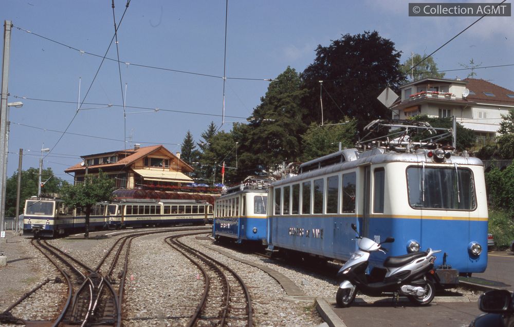 Une double traction d'automotrices Bhe 4/8 du MVR marque l'arrêt en gare de Glion où deux Bhe 2/4 stationnent sur une voie de garage [document projeté ou vidéo] / Jeremy Wiseman (1933-2022), Photographe . - [S.l.] : [s.n.], 2004 . - 1 diapositive : couleur ; 5 x 5 cm. Langues : Français ( fre) |  |