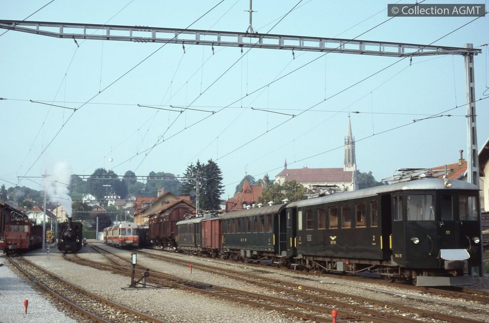 Vue d'ensemble de la gare de Châtel-St-Denis où stationnent divers véhicules des GFM ainsi qu'un train à vapeur [document projeté ou vidéo] / Jeremy Wiseman (1933-2022), Photographe . - [S.l.] : Kodak, 1981 . - 1 diapositive : couleur ; 5 x 5 cm. Langues : Français ( fre) |  |