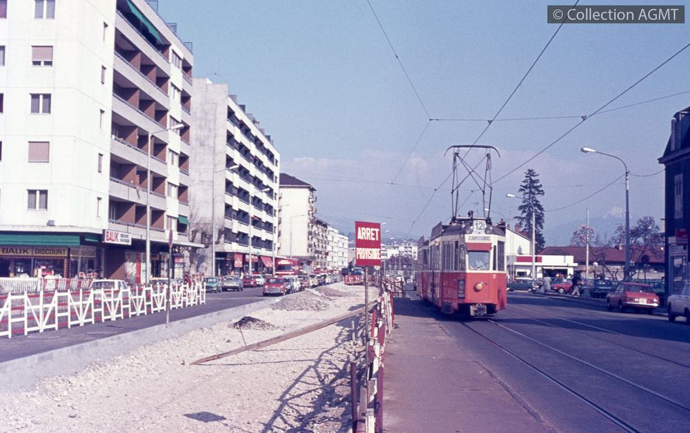3124(494.42)_CGTE_1967-01.jpgImage JpegUn convoi CGTE de la ligne 12 mené par l'automotrice 727 circule à la rue de Genève où les travaux de reconstruction des voies ont débutés / Richard J.S. Wiseman