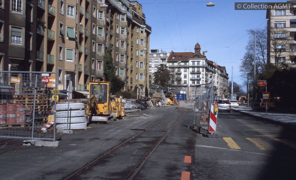 A proximité du carrefour avec l'avenue de France, la construction des nouvelles voies de tram de la rue de Lausanne est achevée [document projeté ou vidéo] / Richard J.S. Wiseman, Photographe . - [S.l.] : [s.n.], 2003 . - 1 diapositive : couleur ; 5 x 5 cm. Langues : Français ( fre) |  |