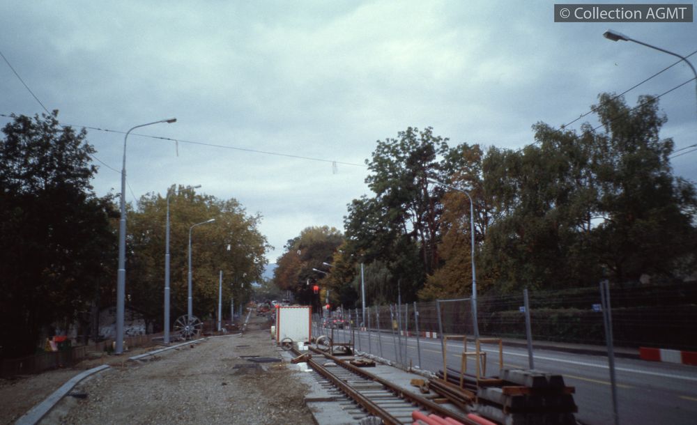 3123(494.42)_TPG_2007-04_d.jpgImage JpegUn premier tronçon de voie est posé et bétonné sur la route de Meyrin à la hauteur du futur arrêt "Vieusseux" / François Chapuis