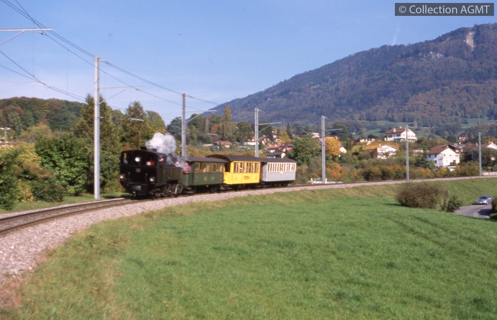 Mené par la locomotive G 2x2/2 105 (ex-SEG), un convoi du BC à destination de Vevey circule à proximité d'Hauteville [document projeté ou vidéo] / Jeremy Wiseman (1933-2022), Photographe . - [S.l.] : [s.n.], 2001 . - 1 diapositive : couleur ; 5 x 5 cm. Langues : Français ( fre) |  |