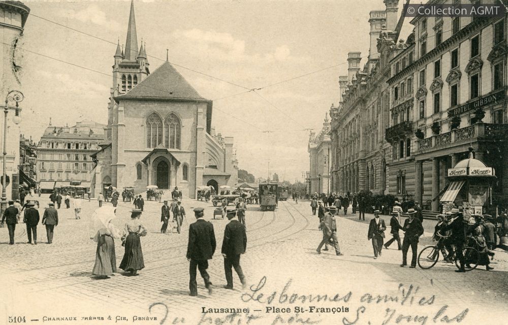 Lausanne : place St-François [document graphique à deux dimensions] / Charnaux Frères, Photographe . - Genève : Charnaux frères & cie, [ca 1900] . - 1 carte postale : noir et blanc ; 9 x 15 cm. - (Charnaux frères; 5104) . Langues : Français (fre)