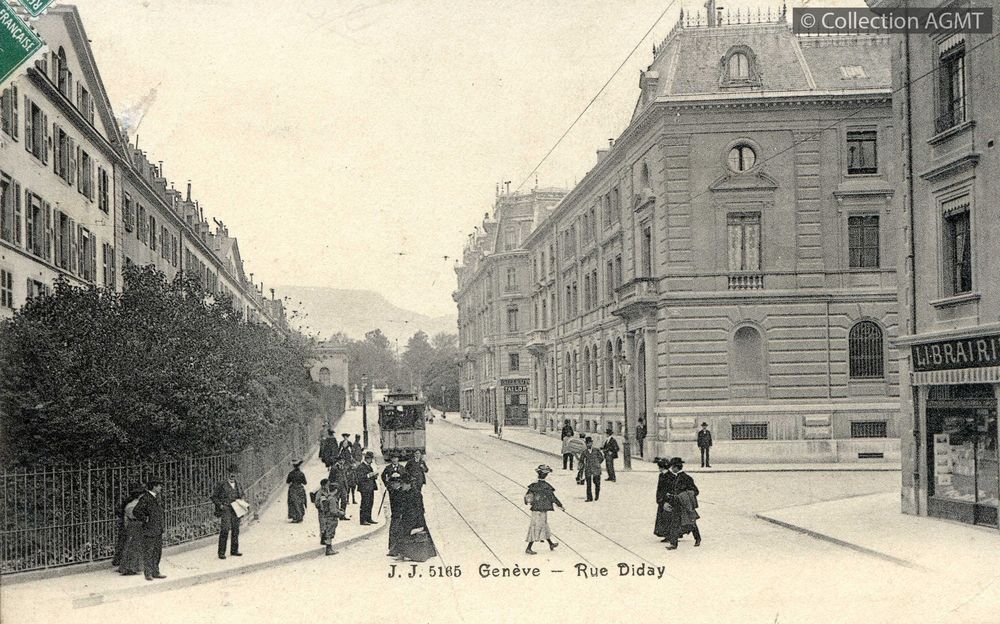 [Année] 1901Index. décimale : 3141 Tramway et métro léger urbain - véhicule - service régulier, transport de voyageur Genève : rue Diday [document graphique à deux dimensions] / Jullien Frères, Photographe . - Genève : Jullien frères, [ca 1901] . - 1 carte postale : noir et blanc ; 10 x 14 cm.