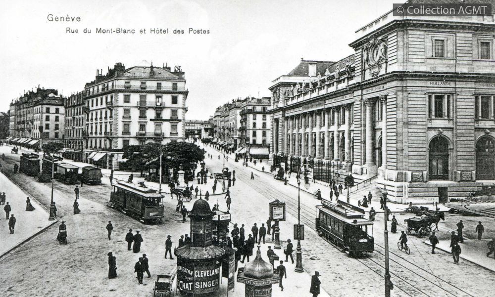 [Année] 1905Index. décimale : 4141 Tramway et métro léger interurbain et vicinal - véhicule - service régulier, transport de voyageur Genève : Hôtel des Postes [document graphique à deux dimensions] . - Berne : Edition phot. Franco-Suisse, [ca 1905] . - 1 carte postale : noir et blanc ; 9 x 14 cm.