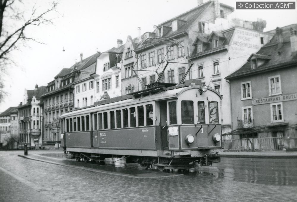 L'automotrice 1 du StSS stationne au terminus de la ligne, à proximité de la gare CFF de Schaffhouse [document graphique à deux dimensions] / Jeremy Wiseman (1933-2022), Photographe . - [S.l.] : [s.n.], [ca 1980] . - 1 photographie : noir et blanc ; 11 x 15 cm. Langues : Français ( fre) |  |