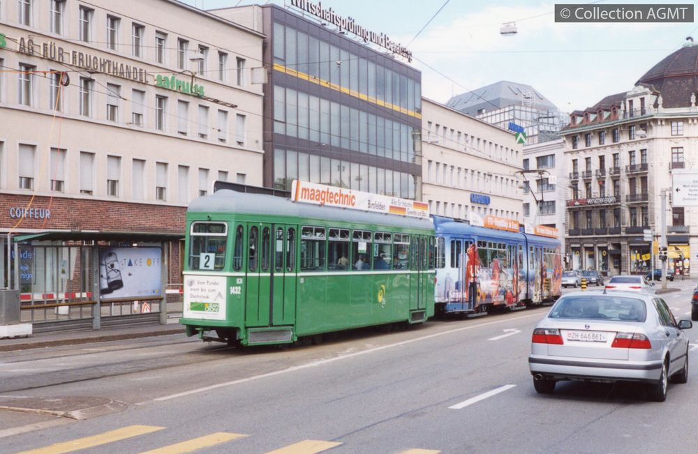 Un convoi BVB de la ligne 2, comportant la remorque 1432 menée par une automotrice en livrée publicitaire, circule à la Centralbahnstrasse [document graphique à deux dimensions] / Jeremy Wiseman (1933-2022), Photographe . - [S.l.] : Kodak, 2001 . - 1 photographie : couleur ; 9 x 14 cm. Langues : Français ( fre) |  |