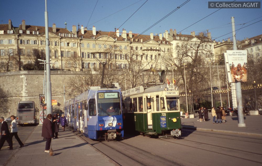 L'automotrice 729, préservée par l'AGMT, stationnée sur la voie centrale à la place de Neuve se fait dépasser par l'automotrice 804 des TPG, en service sur la ligne 12 à destination du Bachet [document projeté ou vidéo] / François Chapuis, Photographe . - [S.l.] : [s.n.], 2004 . - 1 diapositive : couleur ; 5 x 5 cm. Langues : Français ( fre) |  |