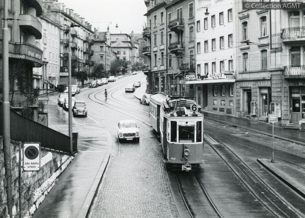Un convoi VBZ de la ligne 6, mené par l'automotrice 1025, arrive au bas de la Leonhardstrasse [document graphique à deux dimensions] / Jeremy Wiseman (1933-2022), Photographe . - [S.l.] : [s.n.], [ca 1967] . - 1 photographie : noir et blanc ; 11 x 15 cm. Langues : Français ( fre) |  |