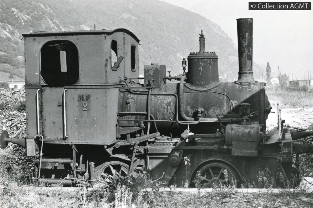 Locomotive de manoeuvre à vapeur à voie normale 020 T no 2 de l'usine Monteforno Valmoesa garrée hors service à San Vittore |