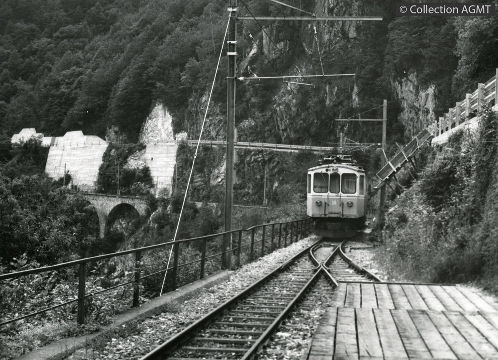 L'automotrice 18 des FART statione à l'entrée de la gare de Ribellasca où un chantier est en cours |