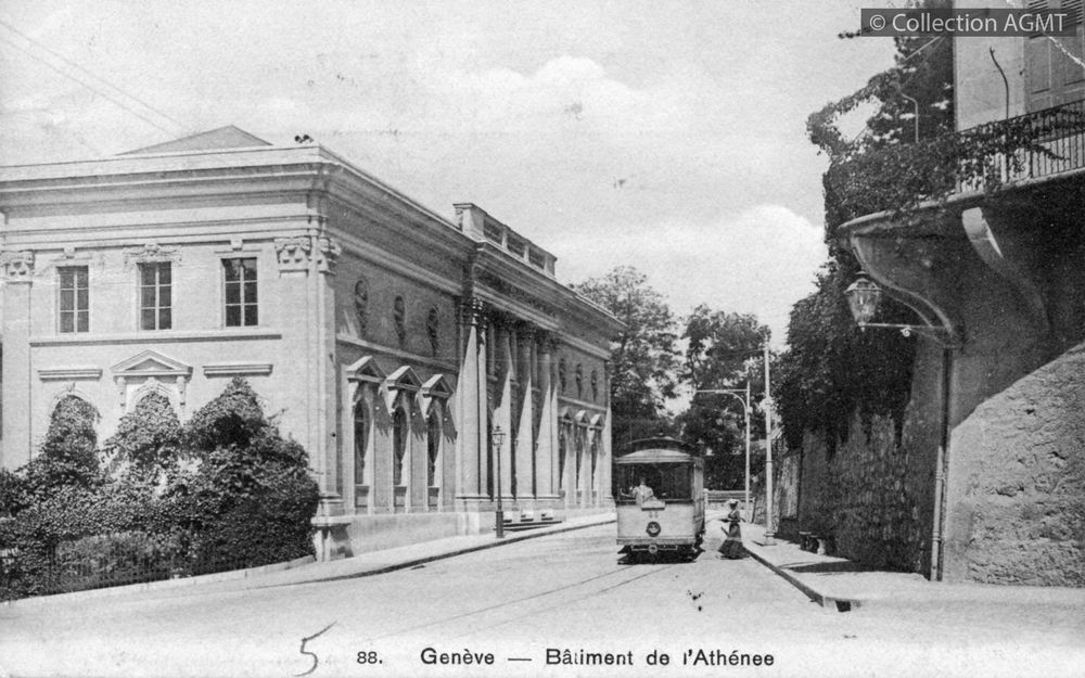 [Année] 1905Index. décimale : 3141 Tramway et métro léger urbain - véhicule - service régulier, transport de voyageur Résumé : Achetée 46 fr. sur Delcampe en juin 2013. A circulé le 16 mars 1908. Genève : bâtiment de l'Athénee [document graphique à deux dimensions] . - Genève : H.B., [ca 1905] . - 1 photo : noir et blanc ; 9 x 14 cm.