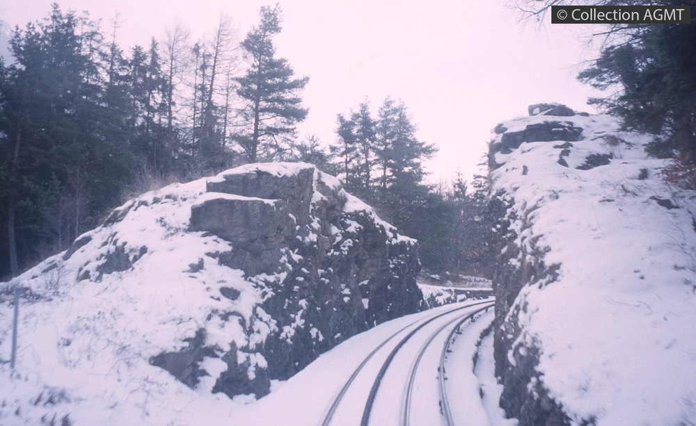 PermalinkTronçon de voie à crémaillère du MC entre Salvan et Vernayaz, vu depuis l'arrière d'un train descendant / François Chapuis