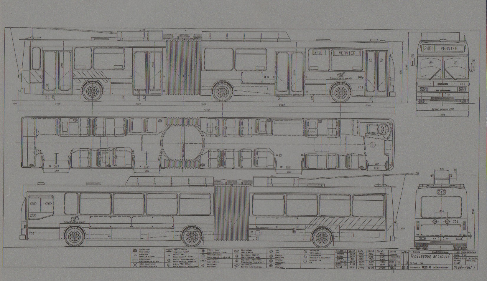 [Année] 1987Index. décimale : 3540 Trolleybus, gyrobus, véhicule bi-mode urbain - véhicule - généralités, histoire, caractéristiques techniques (pour une série particulière, sinon, voir classe 393(si lié à une compagnie) ou 61 Trolleybus articulé : châssis NAW BGT 25 [texte imprimé] / Carrosserie Hess, Collectivité éditrice . - Bellach : Carrosserie Hess, 1987 . - 1 calque : 30 x 42 cm ; dessin à l'encre.