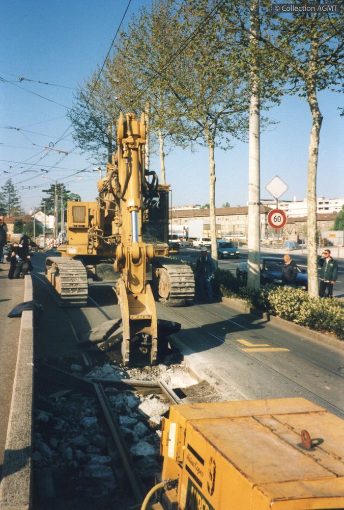[Mots-clefs] Bachet [Mots-clefs] Démolition [Mots-clefs] Genève (canton) [Mots-clefs] Grand-Lancy [Mots-clefs] Infrastructure [Mots-clefs] Prolongement [Mots-clefs] St-Julien, route de [Mots-clefs] Suisse [Mots-clefs] Tramway [Mots-clefs] Travaux [Mots-clefs] Voie [Compagnie] TPG [Année] 1997 [Ligne] Bachet [Ligne] Ligne 12 [Ligne] Ligne 13 [Ligne] Palettes