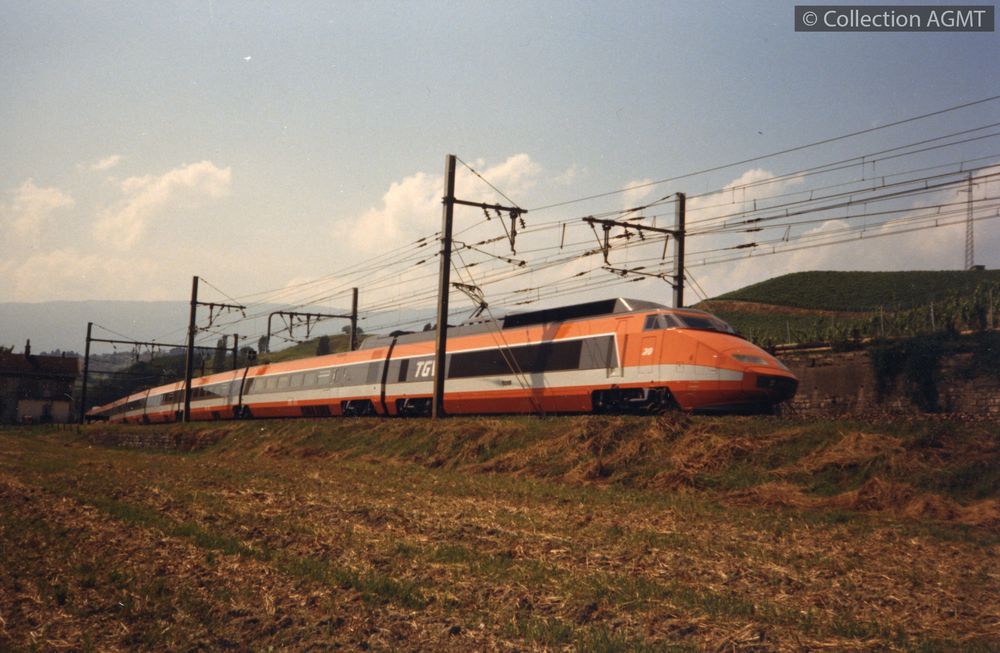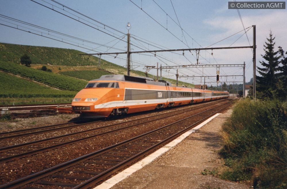 Affiner la recherche Interroger des sources externesCirculant en direction de Genève pour une course de formation, la rame TGV 20 de la SNCF traverse la gare de La Plaine / Gaston Guignard