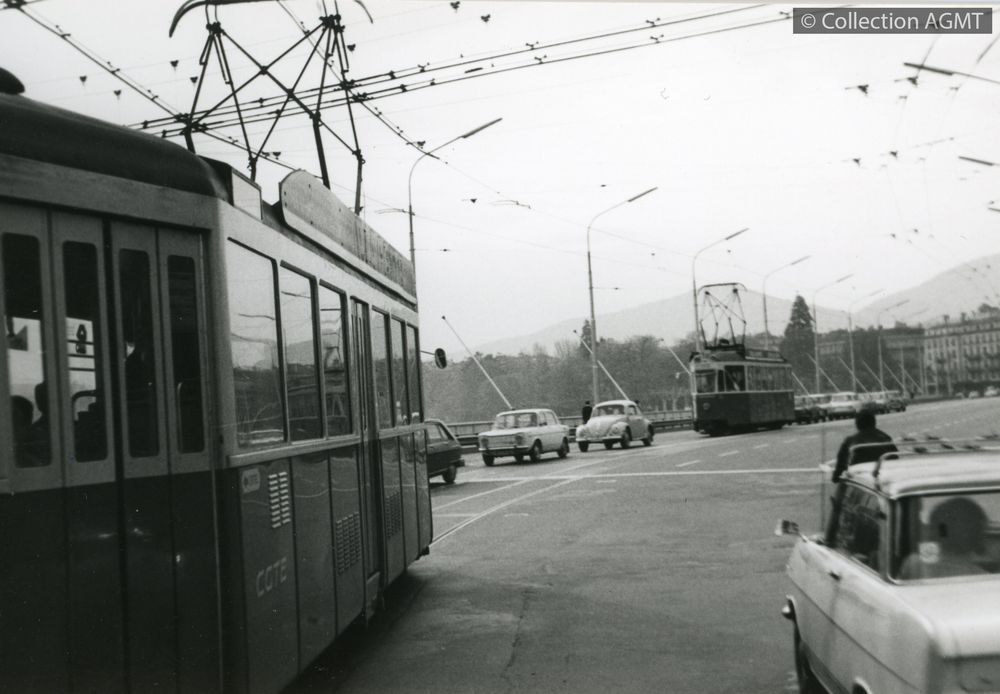 3141(494.42)_CGTE_1969-98.jpgImage JpegLes automotrices CGTE 81, en service sur la ligne 5, et 131, en service sur la ligne 1, traversent le pont du Mont-Blanc / France Reportage