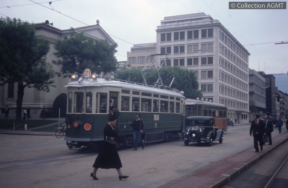 Titre : Chêne-Bourg, place de la Gare : vue de 3/4 du T01 revêtu d'une livrée fantaisiste à l'occasion du tournage d'un film sur Lénine Type de document : document graphique à deux dimensions Auteurs : Michel Krieger, Photographe Année de publication : ca 1990] Importance : 1 photo Présentation : couleur Format : 11 x 13 cm Langues : Français (fre) Catégories : [Mots-clefs] 60-70