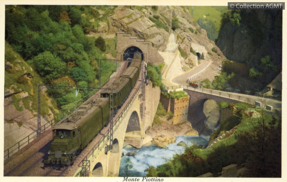 [Compagnie] CFF (Suisse)Index. décimale : 4341 Chemin de fer interurbain et vicinal - véhicule - service régulier, transport de voyageur Monte Piottino [document graphique à deux dimensions] / W. Borelli, Photographe . - Airolo : W. Borelli, [ca 1939] . - 1 carte postale : colorisée ; 10 x 15 cm. - (W. Borelli; 2754) .