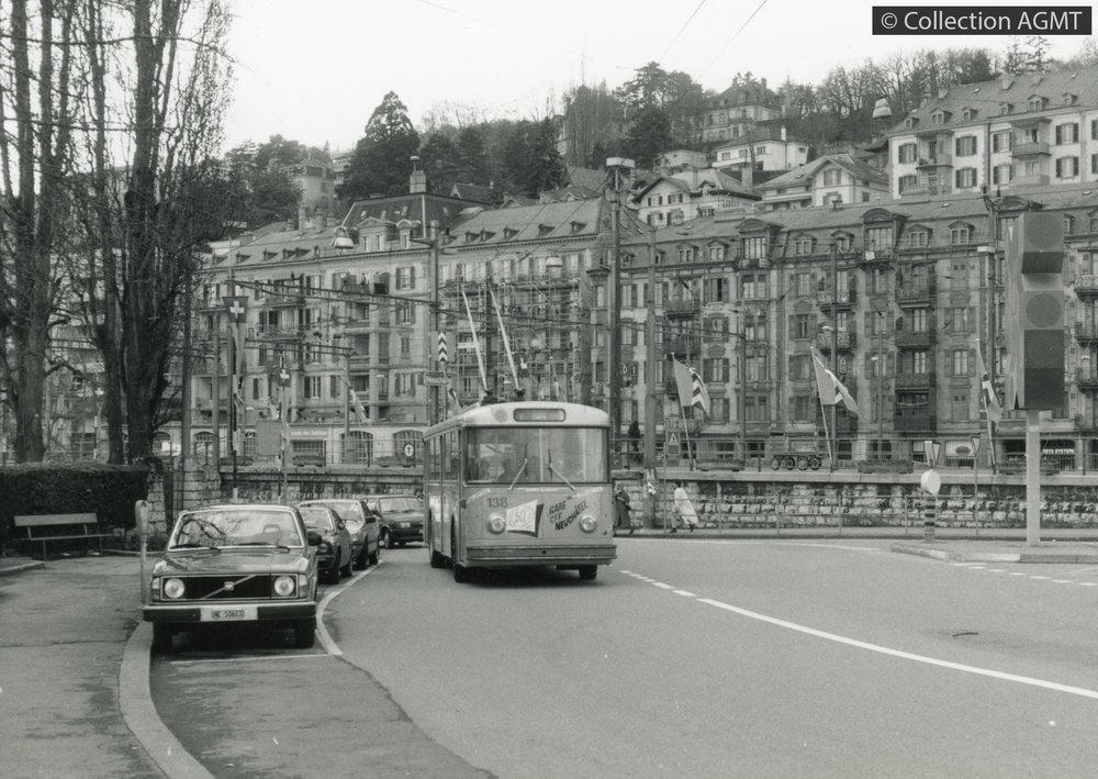 En service sur la ligne 3 à destination du Petit-Saconnex, le trolleybus 22 de la CGTE circule dans le goulet de la rue Cornavin dont les jours sont comptés |