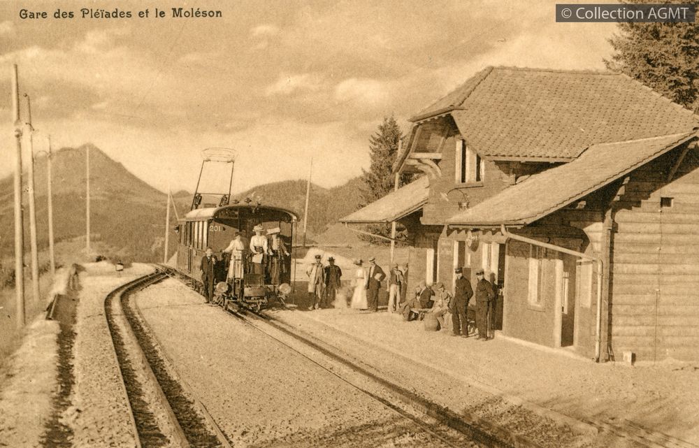 [Année] 1920Index. décimale : 4341 Chemin de fer interurbain et vicinal - véhicule - service régulier, transport de voyageur Gare des Pléïades et le Moléson [document graphique à deux dimensions] / Edgar Simpson, Photographe . - Blonay : Edgar Simpson, phot.-édit., [ca 1920] . - 1 carte postale : noir et blanc ; 9 x 14 cm. - (E. Simpson; 282) .