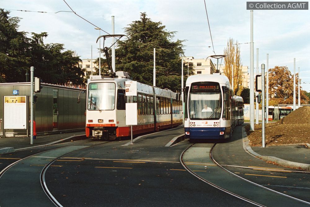 PermalinkAu terminus des Nations, les automotrices 837 et 864 des TPG, en service sur les lignes 13 et 15, attendent l'heure du départ pour les Palettes / Martin Schweizer