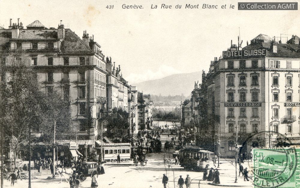 [Année] 1905Index. décimale : 3141 Tramway et métro léger urbain - véhicule - service régulier, transport de voyageur Genève : la rue du Mont-Blanc et le Mont-Blanc [document graphique à deux dimensions] . - Genève : B & Co, [ca 1905] . - 1 carte postale : noir et blanc ; 9 x 14 cm. - (B & Co; 431) .