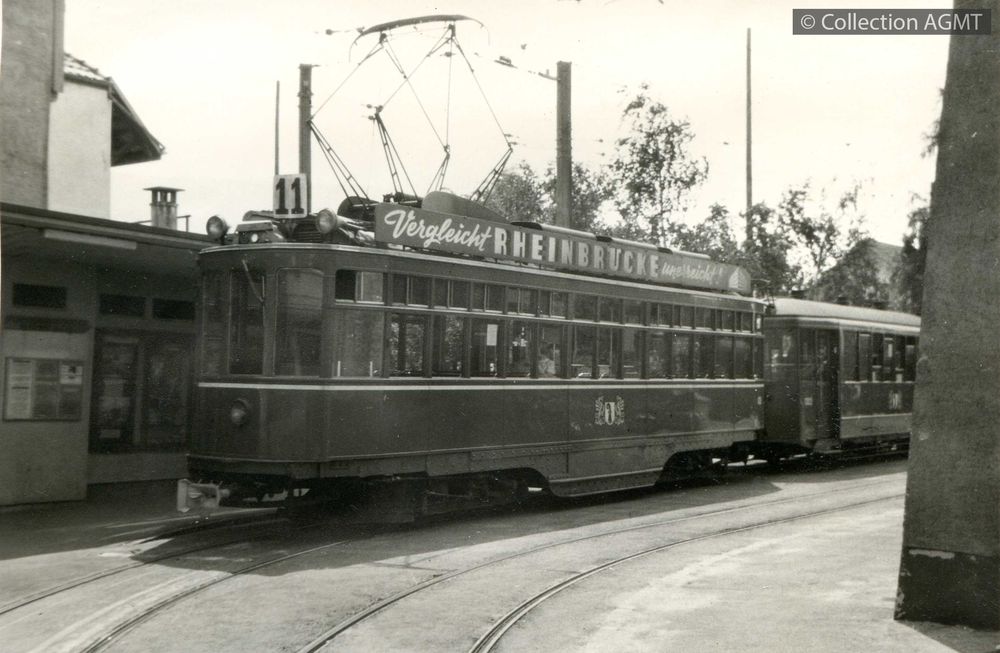 [Compagnie] BVB (Bâle)Index. décimale : 3141 Tramway et métro léger urbain - véhicule - service régulier, transport de voyageur Aesch : convoi de la ligne 11 formé de l'automotrice 301 et de la remorque 1318 [document graphique à deux dimensions] / Gaston Martin, Photographe . - Genève : Migros, 2008 . - 1 photo : noir et blanc ; 11 x 16 cm.