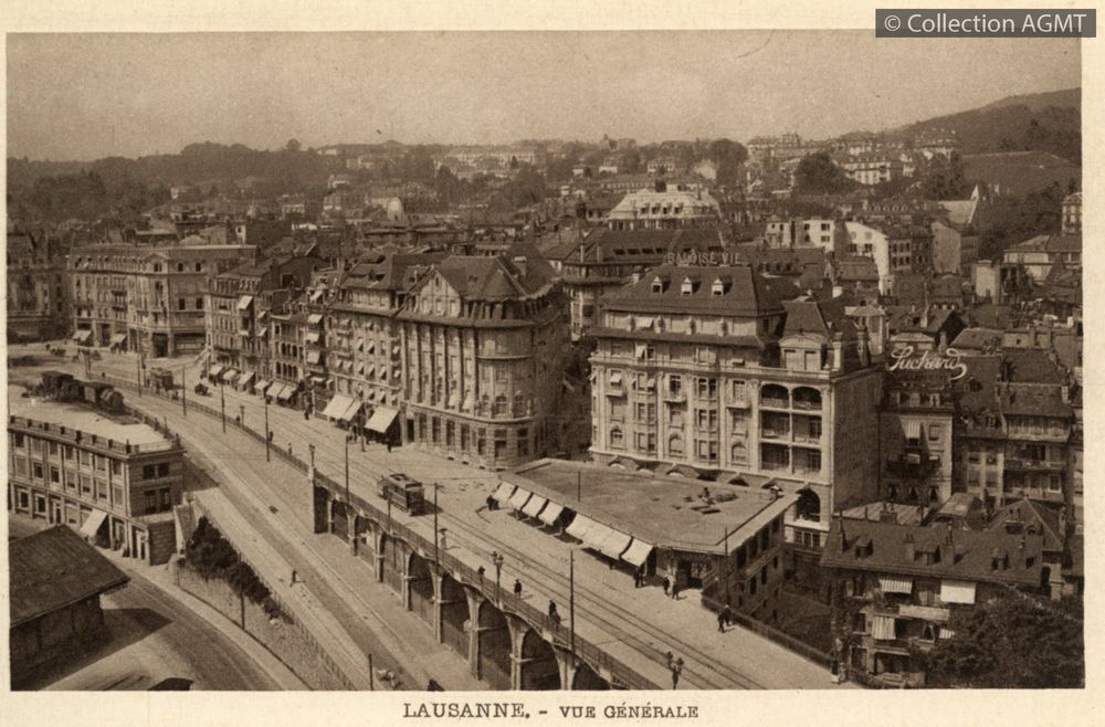 [Compagnie] TL (Lausanne)Index. décimale : 3141 Tramway et métro léger urbain - véhicule - service régulier, transport de voyageur Lausanne : vue générale [document graphique à deux dimensions] . - Lausanne : Edition Grands Magasins "A l'Inovation", [ca 1910] . - 1 carte postale : noir et blanc ; 9 x 14 cm.