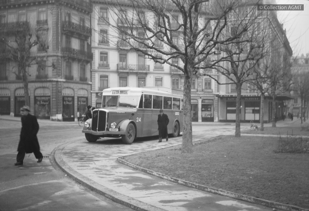 PermalinkPermalinkGenève, rond-point de Rive : en service sur la ligne B, l'autobus 24 de la CGA attend l'heure du départ pour Chevrier / Willy Boegli