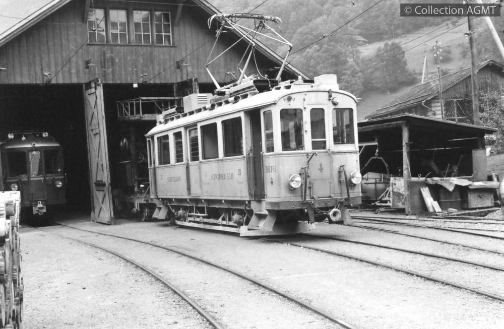 [Ligne] SchwandenIndex. décimale : 4141 Tramway et métro léger interurbain et vicinal - véhicule - service régulier, transport de voyageur L'automotrice BCFe 2/2 4 du SeTB stationne devant la remise d'Engi-Vorderdorf en compagnie du wagon-tour d'entretien de la ligne aérienne [document graphique à deux dimensions] / Jacques Bazin, Photographe . - Genève : Photo Hall, 2013] . - 1 photo : noir et blanc ; 11 x 16 cm + 1 négatif 24 x 36 pour tirage en noir et blanc.