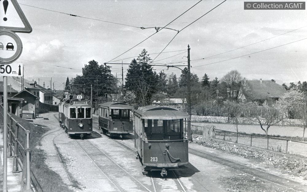Affiner la recherche Interroger des sources externesL'automotrice Ce 2/2 110 de la CGTE stationne au terminus de la ligne 8 à Veyrier en compagnie des remorques C2i 203 et 209 et d'une autre "Petite cent" / Jeremy Wiseman