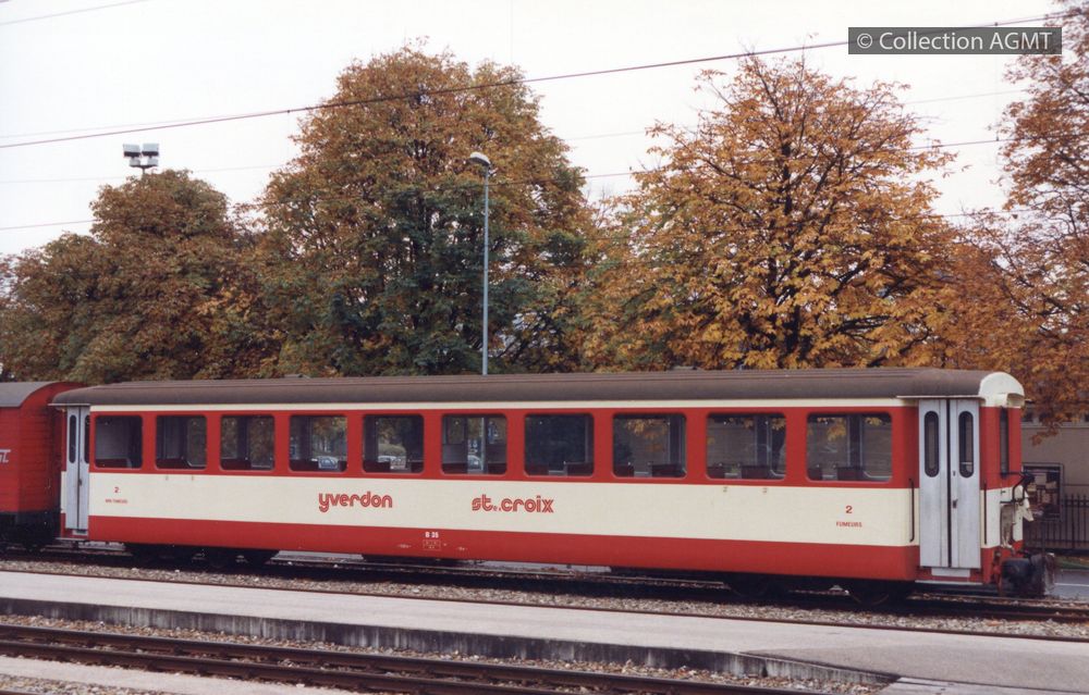 PermalinkVoiture-pilote 52 en tête, une rame réversible de l'YSteC attend l'heure du départ en gare d'Yverdon / Gaston Guignard