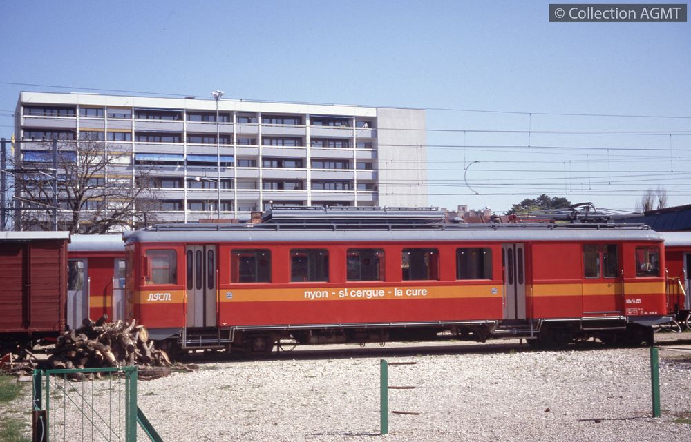 4341(494.45)_NStCM_1985-31.jpgImage JpegL'automotrice ABDe 4/4 10 du NStCM manœuvre en gare marchandises de Nyon à côté des automotrices 2 et 6 / Gaston Guignard
