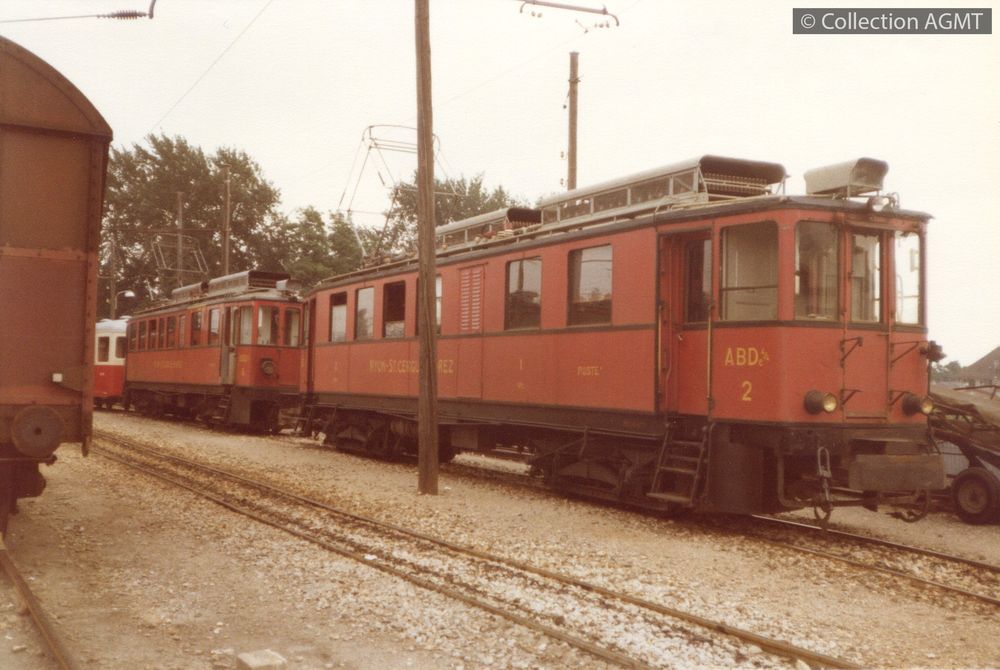 PermalinkLes automotrices ABDe 4/4 2 et 6 du NStCM stationnent en gare marchandises de Nyon dans l'attente de leur prochain service / Gaston Guignard
