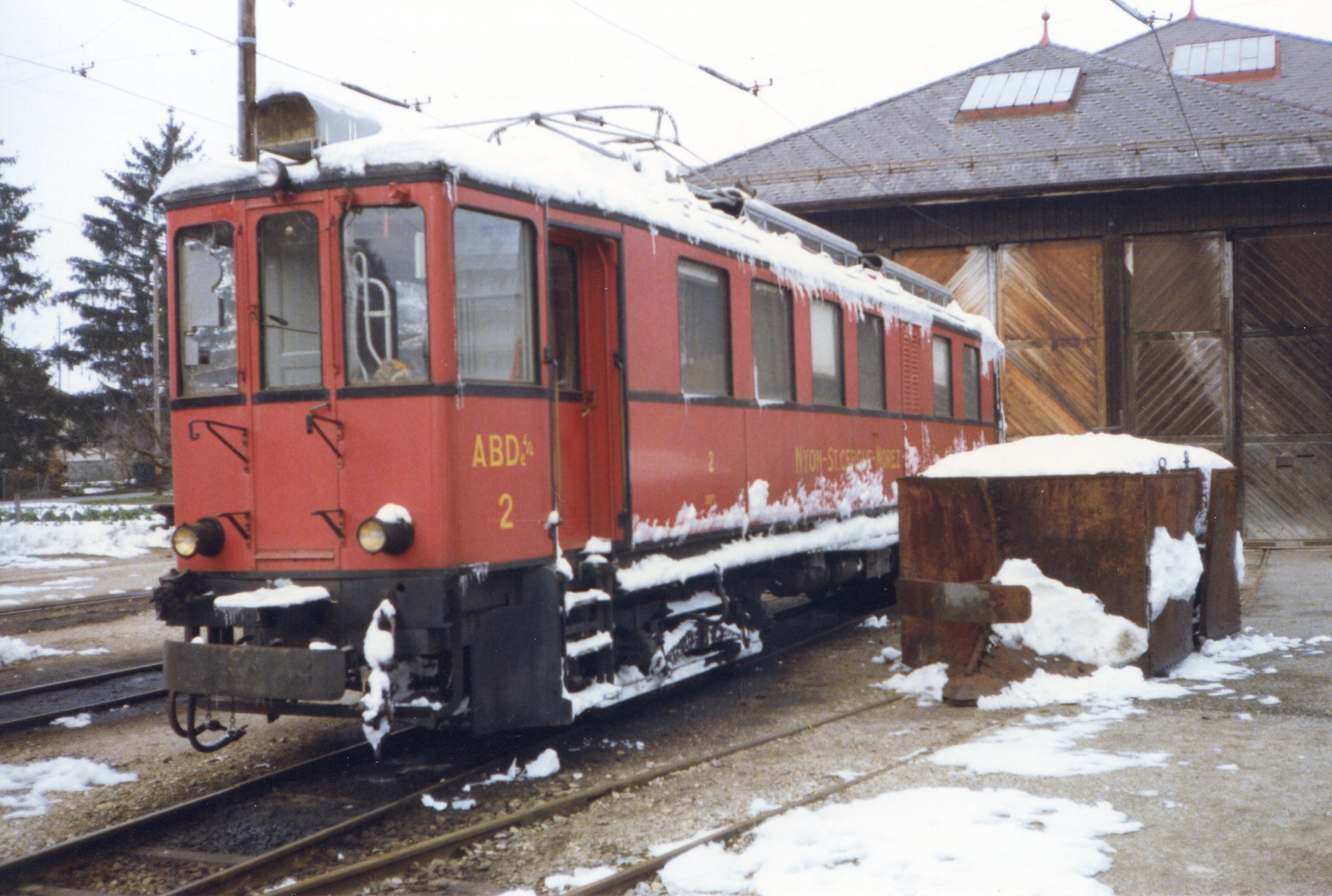 [Ligne] NyonIndex. décimale : 4341 Chemin de fer interurbain et vicinal - véhicule - service régulier, transport de voyageur ABDe 4/4 5 et ABDe 4/4 10 pour Nyon aux Plantaz [document graphique à deux dimensions] / Jean-Louis Rochaix, Photographe . - Lausanne : BVA, [ca 1980] . - 1 carte postale : noir et blanc ; 11 x 15 cm. - (BVA; 69.06 NStCM) .