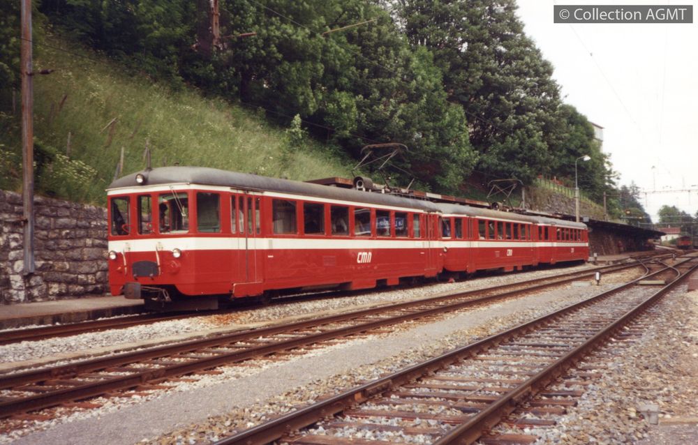 PermalinkUne rame réversible des CMN, formée de deux automotrices et d'une voiture-pilote, quitte Le Locle pour Les Brenets / Gaston Guignard