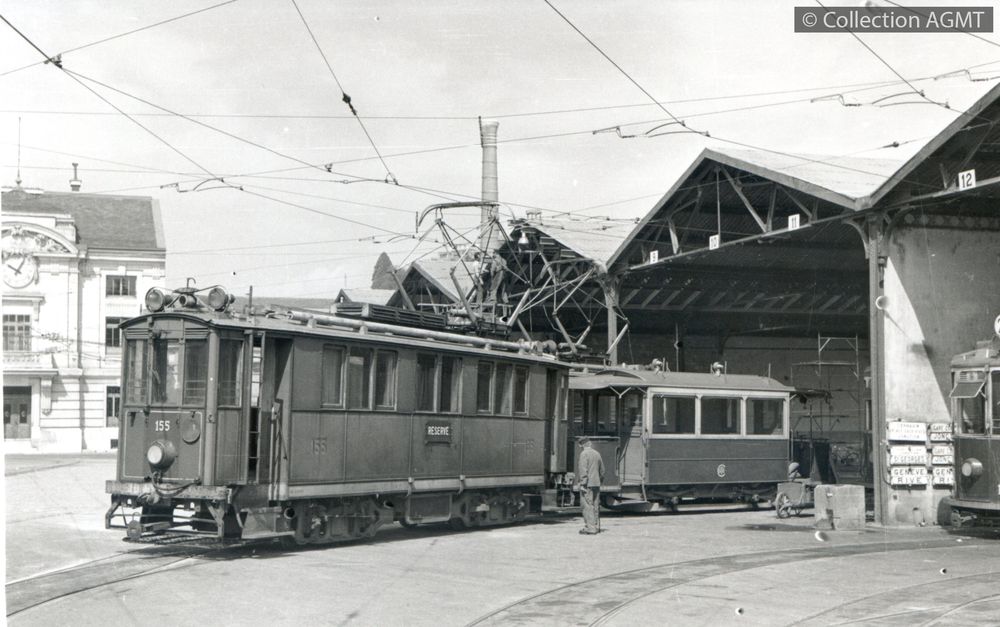 PermalinkUn convoi CGTE "Réservé" formé de l'automotrice Ce 4/4 155 et d'une remorque série 201-210 stationne devant une halle du dépôt de la Jonction / Jeremy Wiseman