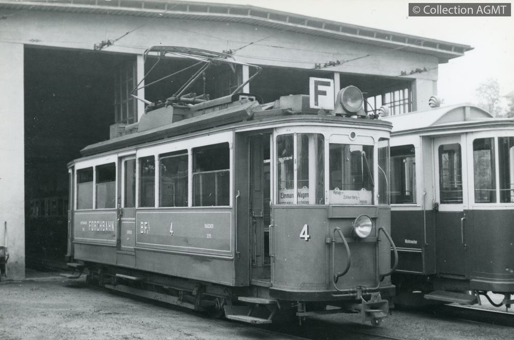 [Compagnie] FB (Zurich)Index. décimale : 4141 Tramway et métro léger interurbain et vicinal - véhicule - service régulier, transport de voyageur L'automotrice BFe 2/2 4 du FB, utilisée pour des navettes Rehalp - Zollikerberg, stationne devant la halle du dépôt de Forch [document graphique à deux dimensions] / Jeremy Wiseman (1933-2022), Photographe . - [S.l.] : [s.n.], [ca 1965] . - 1 photographie : noir et blanc ; 10 x 14 cm.