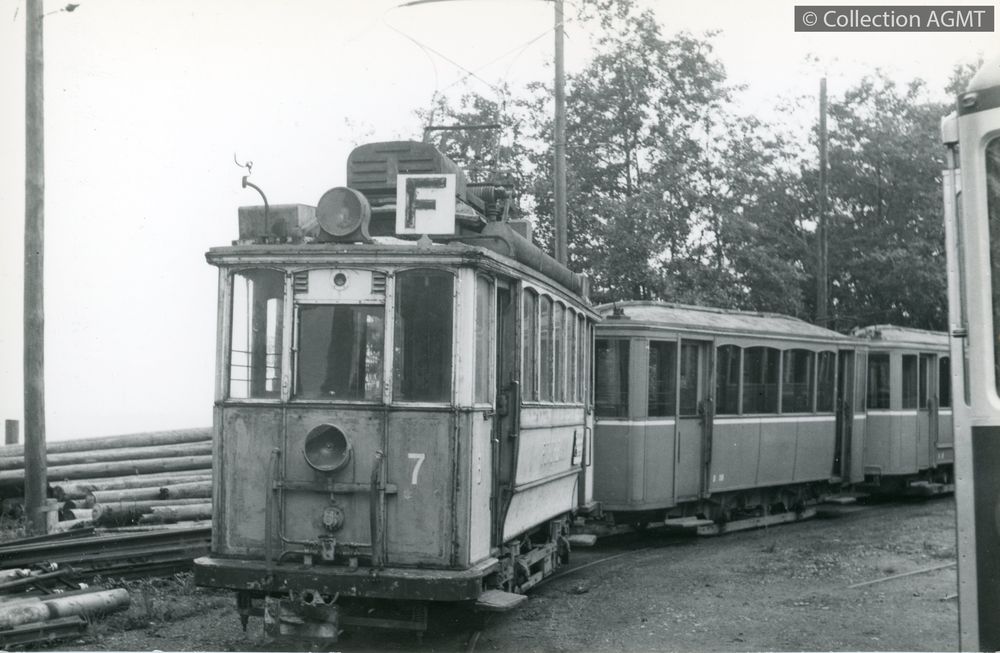 4144(494.34)_FB_1965-04.jpgImage JpegL'automotrice Be 2/2 7 du FB, ex-LSB Ce 2/2 1, stationne avec deux remorques au dépôt de Forch / Jeremy Wiseman